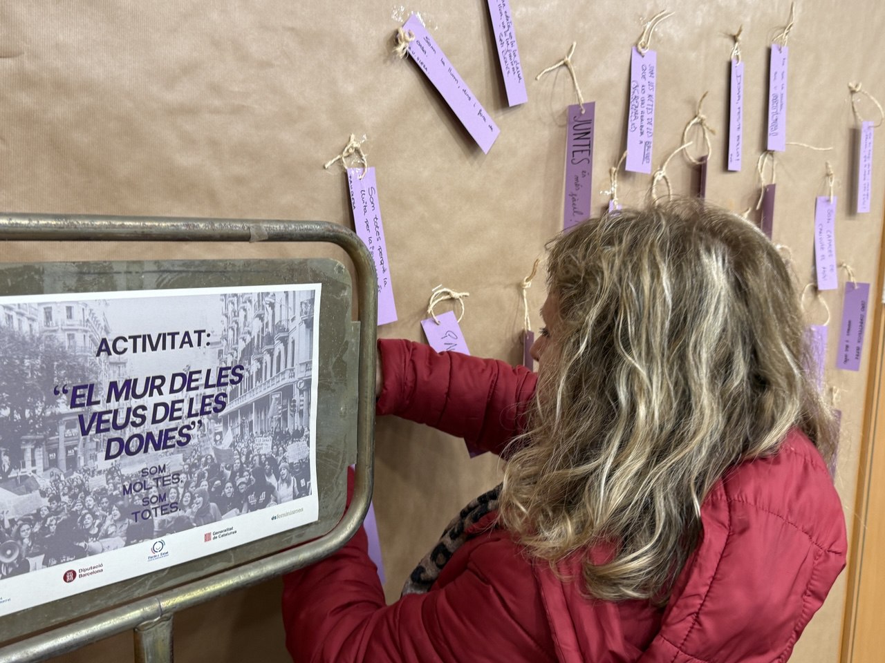 La jornada ha continuat amb diverses propostes participatives. Una d’elles, ha estat “L’arbre de les veus de les dones: missatges sobre sororitat i empoderament”, una activitat en què les persones assistents han escrit missatges de suport i reivindicació que s’han penjat en una olivera simbòlica.