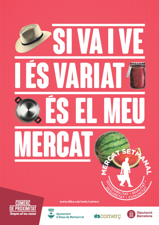 Els mercats setmanals impulsen el model de comerç de proximitat i garanteixen a la població consumidora una oferta comercial variada i de qualitat. Van i venen cada setmana, fomentant la sostenibilitat, ja que no ens hem de desplaçar... venen ells a nosaltres, arribant a petits i grans municipis, i són dinamitzadors econòmics i socials per excel·lència dels municipis. En aquesta línia, per tal d'impulsar el mercat setmanal dels divendres, l'Ajuntament d'Olesa de Montserrat s'ha adherit a la campanya de comerç 'És el meu mercat setmanal' que organitza la Diputació de Barcelona.